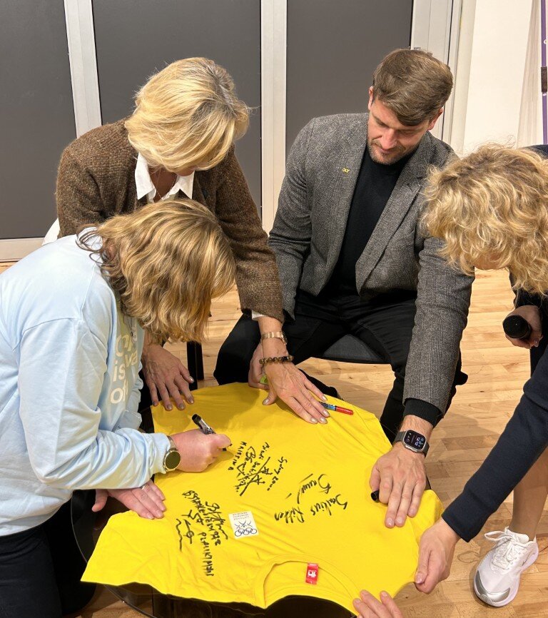 Spalio 17 d. mokykloje įvyko susitikimas su Lietuvos olimpiečiais: Vida Venciene, Sauliumi Ritter, Birute Statkevičiene, Birute Šakickiene, Kristina Poplavskaja-Bagviliene ir Rita Ramanauskaite. Olimpiečiai dalijosi savo patirtimis, pergalėmis, iššūkiais ir mintimis apie tai, ką reiškia siekti tikslo iki galo. Jų pasakojimai pripildė salę įkvėpimo, motyvacijos ir pasididžiavimo savo šalimi. Mokiniai klausėsi sužavėti, o daugelio akyse spindėjo noras judėti į priekį, tikėti savimi ir savo svajonėmis.