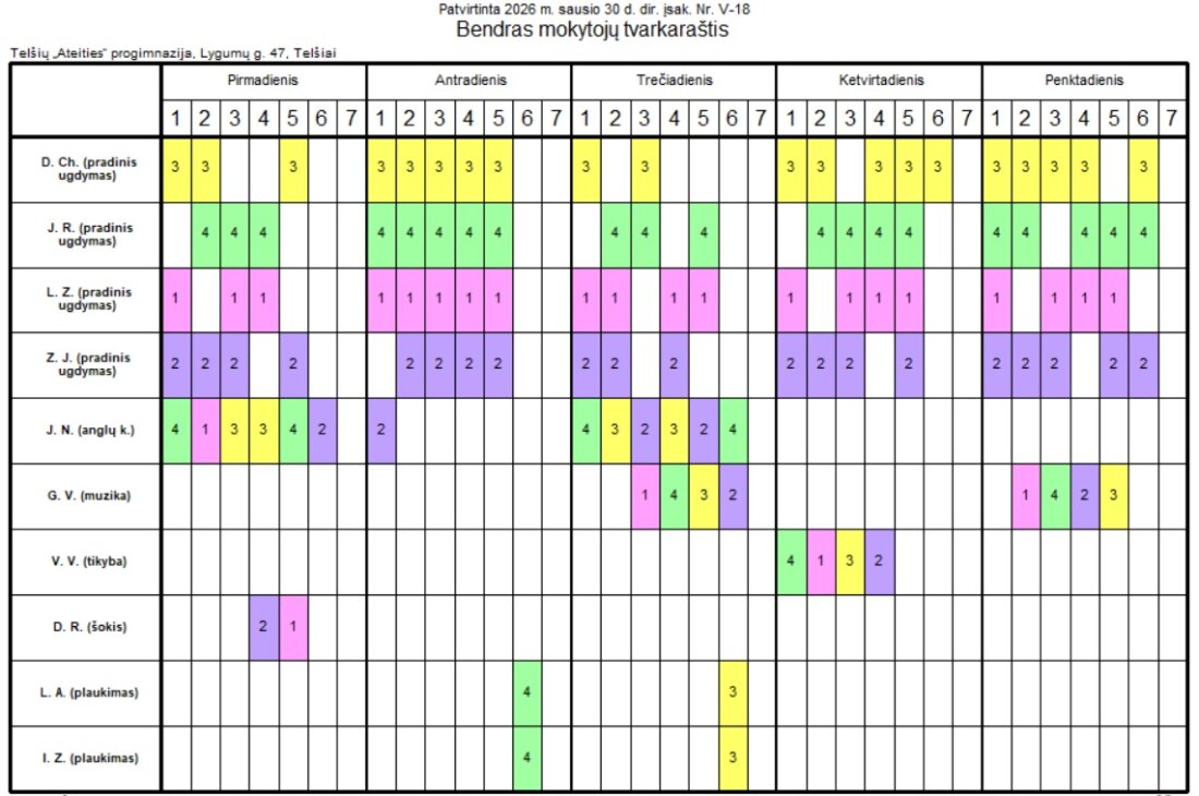 2025-2026 m.m. 2 pusmetis. Mokytojų pamokų tvarkaraštis „Saulėtekio“ skyrius