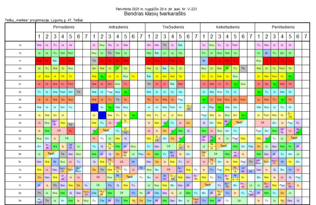 2025-2026 m.m. 1 pusmetis. 1–8 klasių pamokų tvarkaraštis